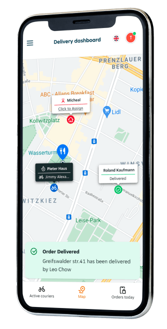 Dank der Lieferübersicht siehst du, wo deine Fahrer:innen gerade sind und wann sie ins Restaurant zurückkehren. So kannst du die Zubereitung perfekt timen und sicherstellen, dass die Speisen immer frisch ankommen.